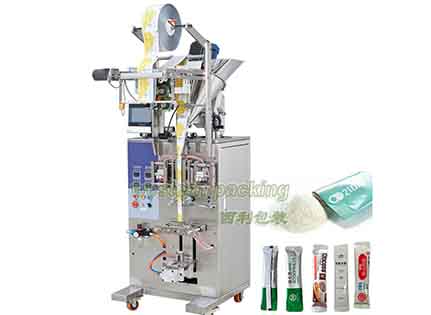Features of this machine: The machine can automatically complete all tasks such as measuring, bag making, filling, sealing, cutting, counting, and hot pressing batch numbers during the packaging process. The design adopts a unique embedded sealing, an enhanced heat sealing mechanism, and an intelligent temperature Temperature control by the controller, with good heat balance, adapting to various packaging materials, performance number, low noise, clear sealing lines, and strong sealing;