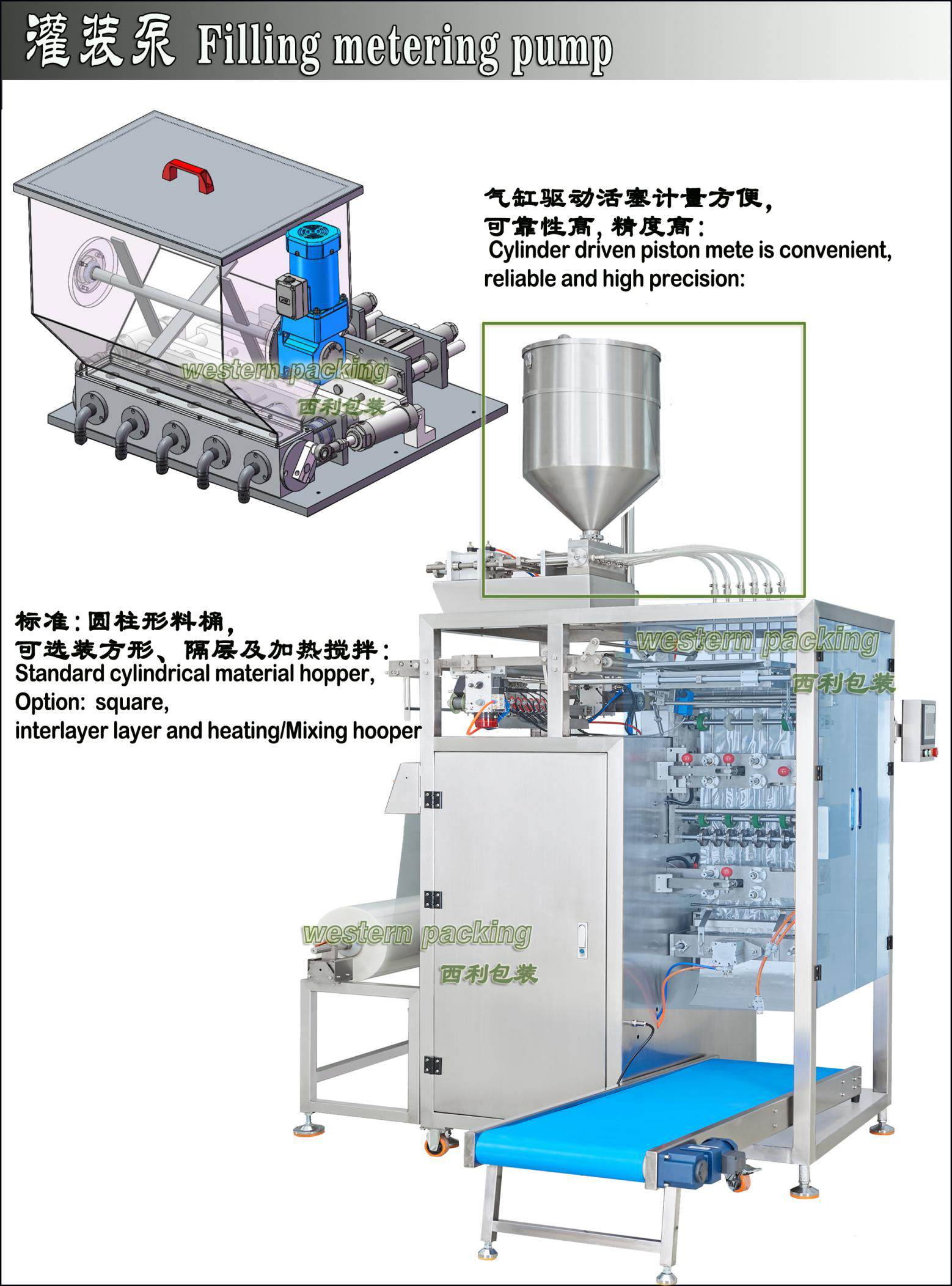 1.包装机适用于食品、化工、医药等行业上的液体、粘稠体、酱类、膏类物料的自动液体包装,如:1、液体类:果酱、袋装饮料,调料液体、调味包、酱油、调味汁、辣椒油、芝麻油、调味油、植物油、色拉油、奶昔。日用品液体、化妆品液体、护肤液、护肤水、精华液、香水、洗面奶、洗发水、沐浴液、洗手液、消毒液、洁厕液、柔顺液。药类液体、中药液体、农药液体、杀虫剂液体、灭草剂液体、叶片肥液体等各类液体半流体的包装。